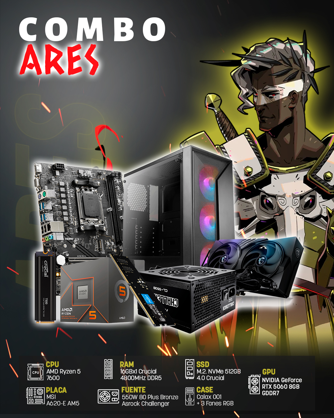 👉 Impulsada por el poderoso AMD Ryzen 5 7600 y la NVIDIA GeForce RTX 5060 de 8GB GDDR7, Ares desata una furia implacable capaz de ejecutar títulos modernos como Metal Gear Solid Δ: Snake Eater, Battlefield 6 y The Callisto Protocol en Full HD Ultra, con una fluidez y detalle que redefinen la experiencia gamer.