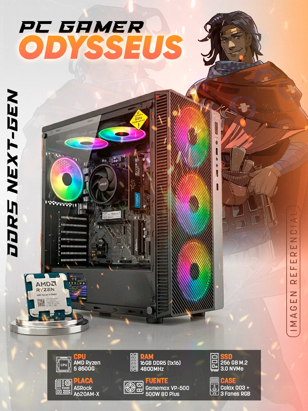 Inicia tu viaje al estándar DDR5 con PC Gamer Odysseus. Ryzen 5 8500G para un rendimiento fluido y eficiente en títulos competitivos al mejor precio.